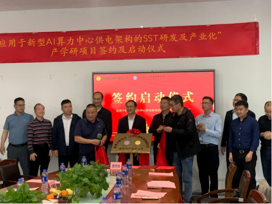 3月16日下午,“应用于新型AI算力中心供电架构的SST研发及产业化”产学研项目签约及启动仪式在广东颖川电气有限公司举行。该项目由武汉理工大学韶关研究院牵头推动,联合武汉理工大学自动化学院与广东颖川电气有限公司共同开展,旨在突破AI算力中心供电领域的关键技术瓶颈,推动固态变压器(SST)技术的研发与产业化应用。
